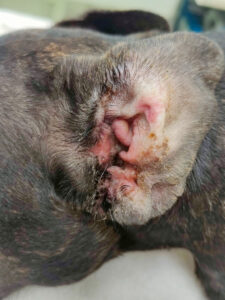 Il sintomo più comune per le allergie ambientali è il prurito con lesioni cutanee primarie o secondarie al leccamento e grattamento e può essere stagionale o persistente tutto l’anno.